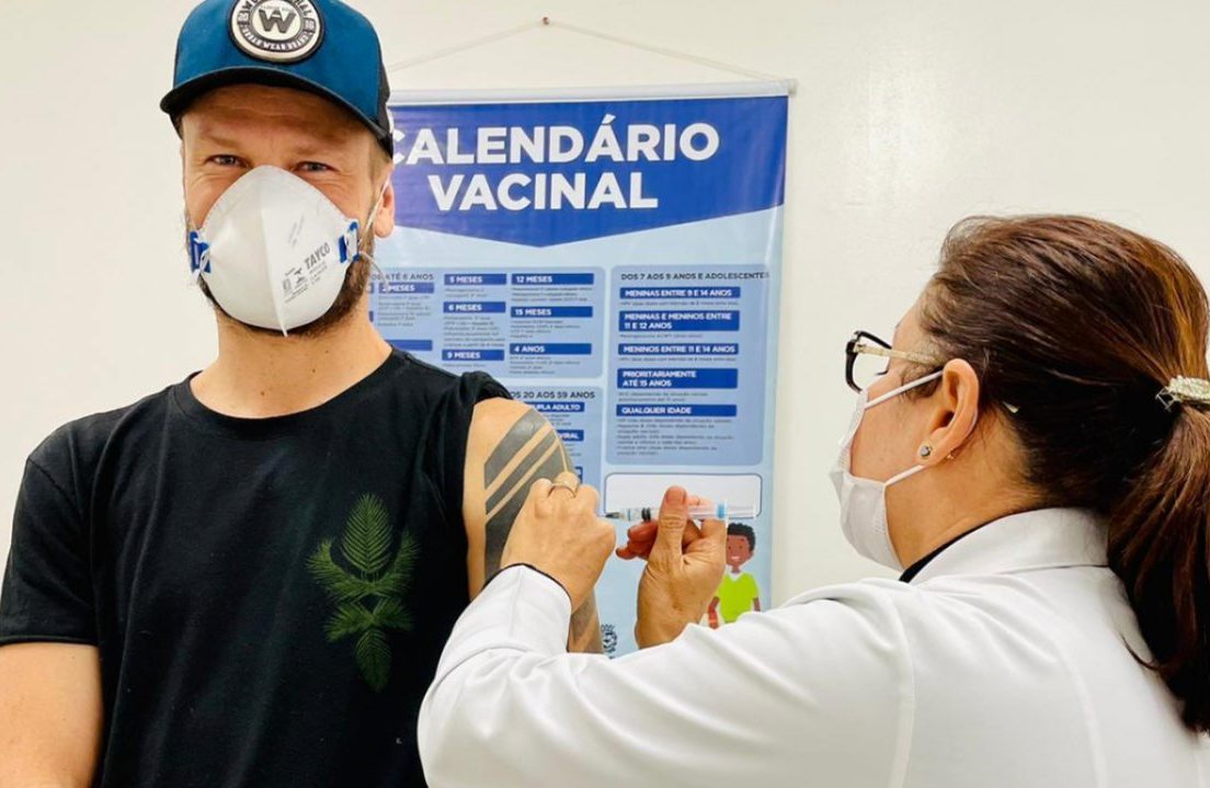 Rodrigo Hilbert, de 41 anos, foi vacinado contra a covid-19 nesta terça-feira, 6. O apresentador da GNT compartilhou uma foto do momento nas redes sociais.