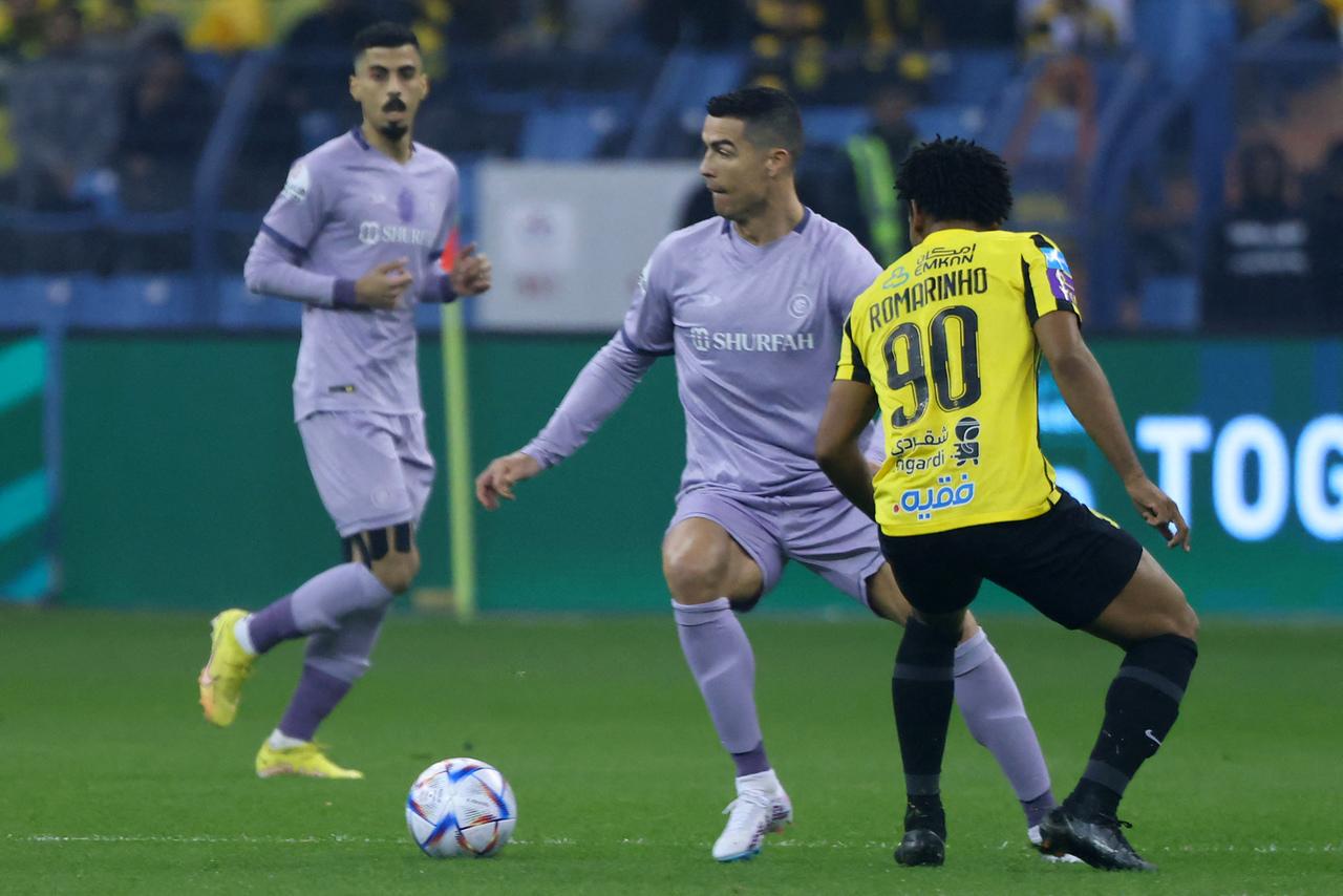 Grande estrela do Al-Nassr, Cristiano Ronaldo foi ofuscado por Romarinho nesta quinta-feira, e acabou eliminado da Supercopa da Arábia Saudita. O atacante brasileiro, lembrado por gols emblemáticos que marcou quando era jogador do Corinthians, fez um gol e deu duas assistências na vitória por 3 a 1 do Al-Ittihad sobre a equipe do craque português, que não balançou a rede.