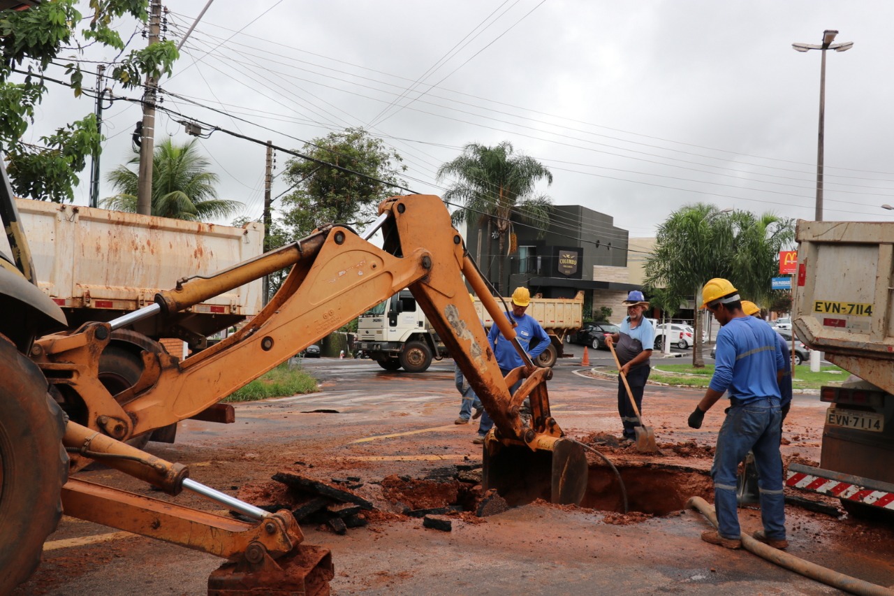 Conforme o presidente da autarquia, Marcelo de Macedo, a rede não suportou a pressão e houve o rompimento, na rotatória da rua Manoel Muller.