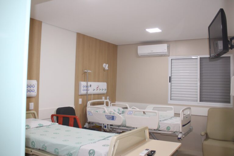 Segundo o hospital, todos os apartamentos da ala de internação do SUS passaram a contar com banheiros privativos, ar-condicionado de 12 mil BTUs do modelo inverter e TVs smart de 32 polegadas.