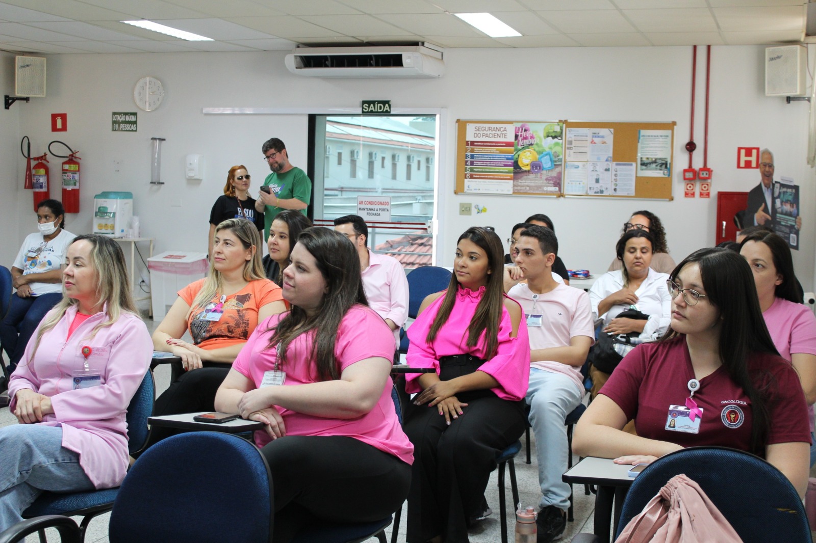 A Santa Casa de Marília promoveu nesta sexta-feira (10) uma palestra em apoio à campanha Outubro Rosa, voltada à conscientização sobre o diagnóstico precoce e o tratamento do câncer de mama. O evento, realizado no salão de reuniões da instituição, reuniu colaboradores, pacientes e membros da comunidade.