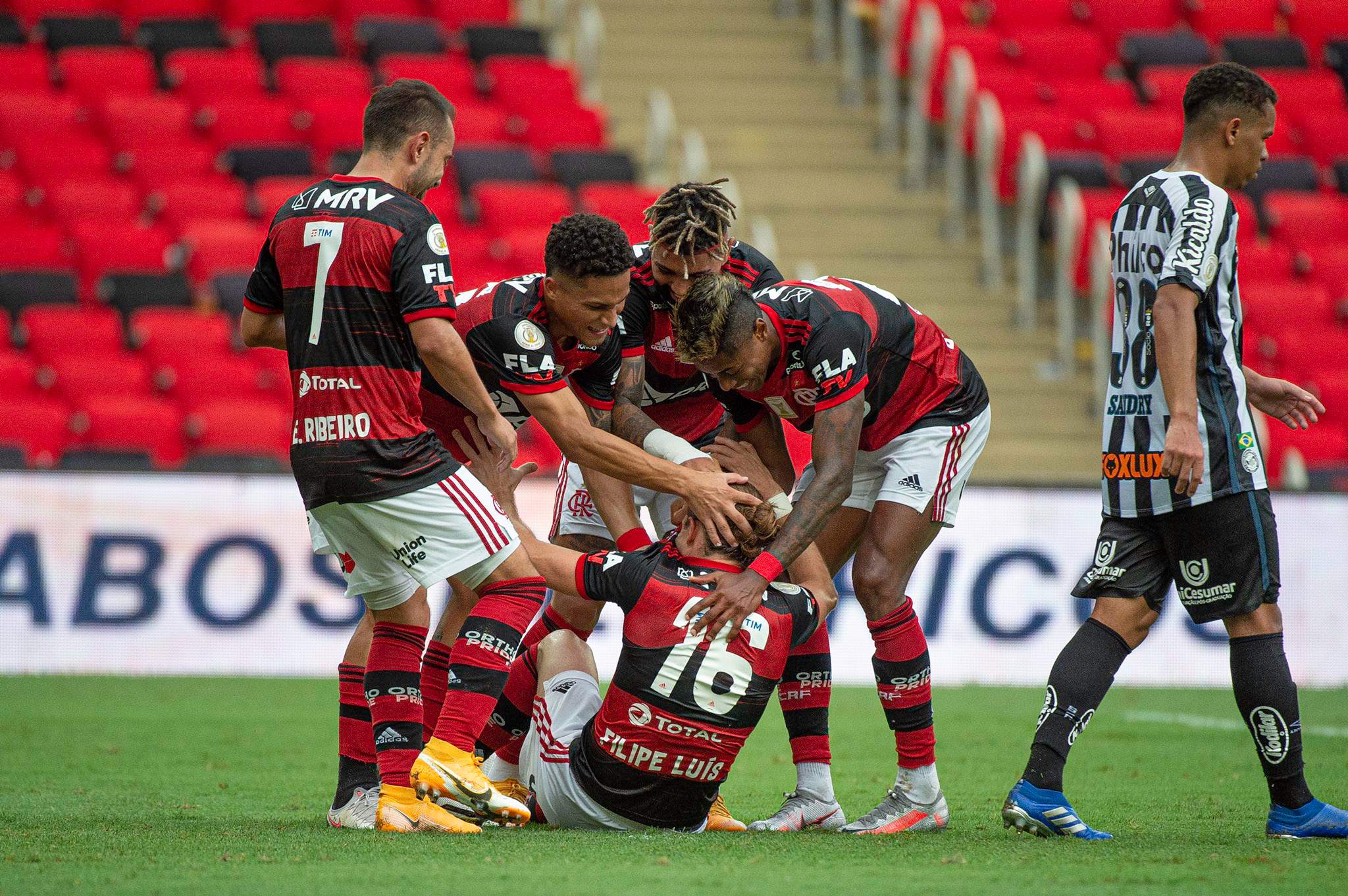 Obrigado a se lançar com tudo ao ataque, o Santos ficou muito vulnerável atrás. E o Flamengo aproveitou bem os espaços. Gerson lançou Arrascaeta, que achou Bruno Henrique. O atacante bateu, João Paulo deu rebote e Filipe Luís ampliou.