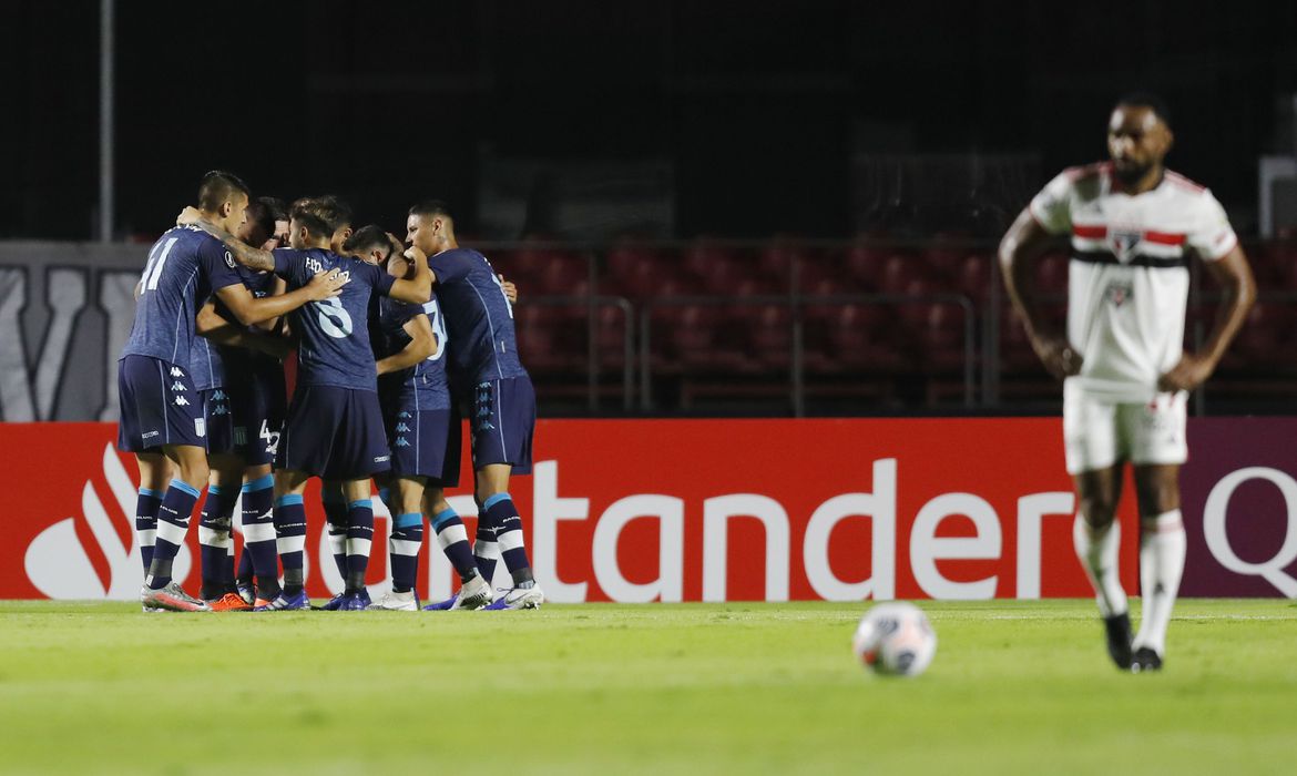 Mas, com o passar do tempo, o Racing foi se sentindo mais à vontade em campo, conseguiu evitar que o São Paulo pressionasse e ganhou confiança. Acabou chegando ao gol, aos 28 minutos, numa falha dupla da defesa tricolor. Primeiro, deu espaço para Lovera cruzar com tranquilidade da esquerda. Depois, os zagueiros permitiram que Novillo se antecipasse para desviar de cabeça para o gol.