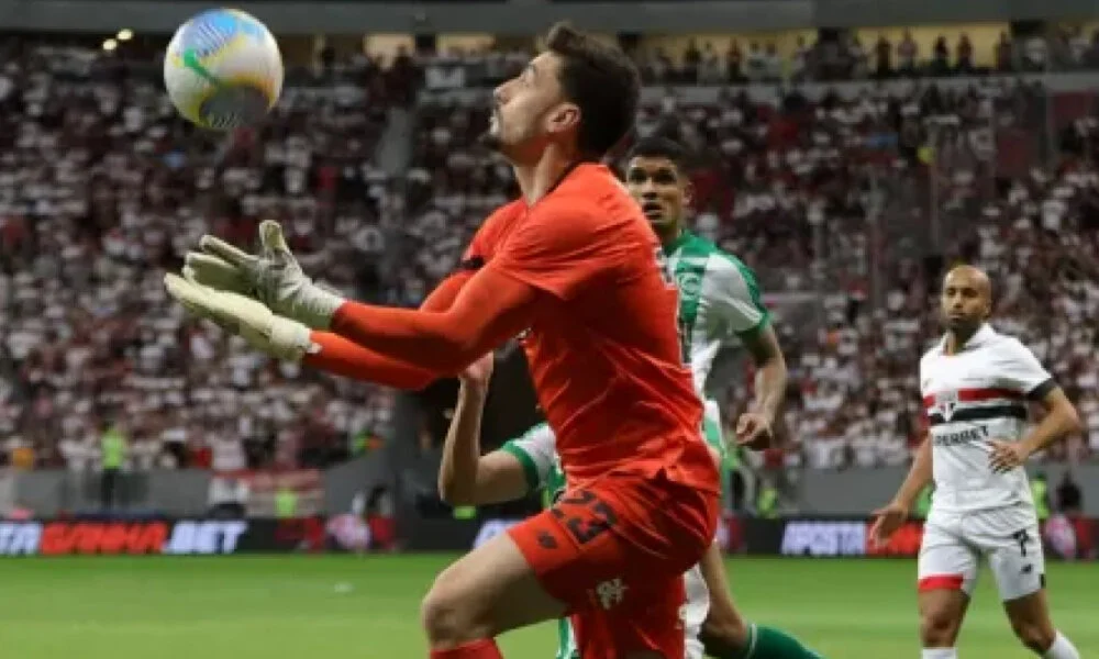 Aos 28 minutos do 2º tempo, o Juventude chegou a abrir o placar, mas teve o gol anulado. Erick chutou e contou com um quique da bola no gramado ruim do Mané Garrincha, enganando Rafael. Mas para alívio do goleiro são-paulino, que já ia engolindo um frangaço, o VAR acionou Wilton para checar um lance no início da jogada, quando Taliari domina a bola com o braço antes de passar para Erick.