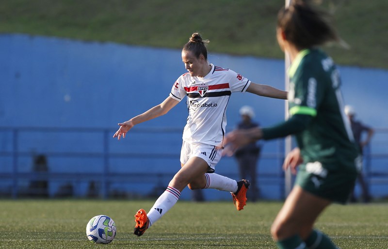 O São Paulo empatou com o Palmeiras, na tarde deste domingo (18), por 1 a 1, no primeiro duelo das quartas de final do Brasileiro Feminino, no Estádio Bruno José Daniel, em Santo André. O gol tricolor foi marcado por Maressa.