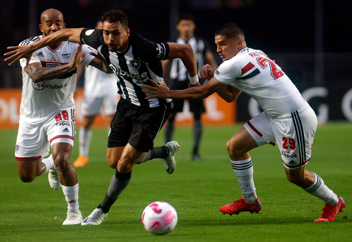 Aos 37 minutos, um lance confuso dentro da área do São Paulo gerou revolta dos jogadores do Botafogo. Tchê Tchê foi puxado por Leo e acabou parando em Felipe Alves. O juiz Jean Pierre Gonçalves Lima foi chamado ao VAR. Após a checagem, foi assinalado o pênalti, e Leo foi expulso, com cartão vermelho direto. Na cobrança, Tiquinho Soares guardou e garantiu a vitória magra do Botafogo.