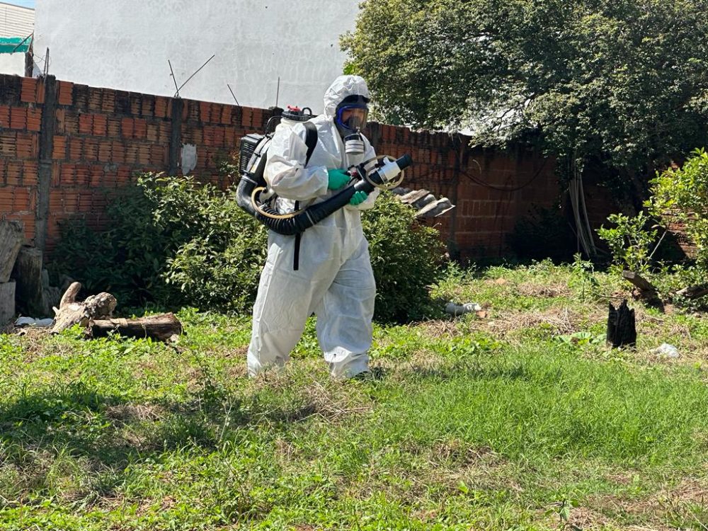 A ação com equipamentos costais e aplicação do inseticida Cielo ULV teve início na manhã desta quinta-feira (4) e será finalizada hoje, como explica a supervisora da Vigilância Ambiental/Zoonoses, enfermeira Vivian Martinelli Funai.