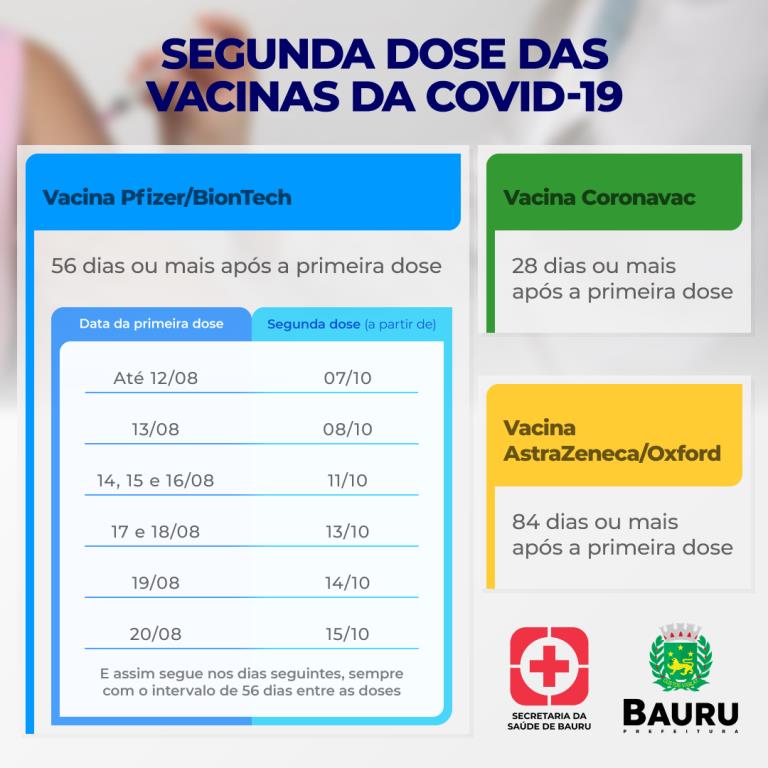 A Secretaria da Saúde de Bauru (distante 110 quilômetros de Marília) está convocando 23 mil pessoas que estão em atraso com a segunda dose da vacina contra a Covid-19. Objetivo é que os moradores façam o agendamento e compareçam para completar a vacinação o quanto antes.