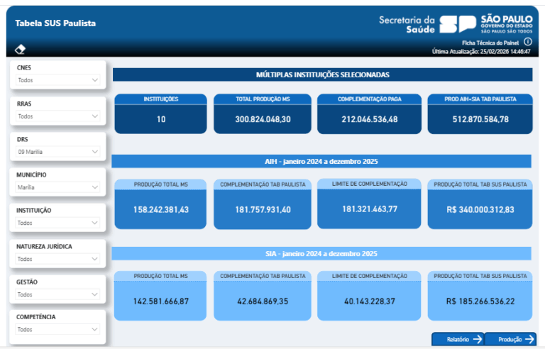 A rede pública e filantrópica de saúde de Marília recebeu mais de R$ 212 milhões em complementações financeiras do Governo do Estado por meio da chamada Tabela SUS Paulista, programa que amplia os valores pagos por procedimentos realizados pelo Sistema Único de Saúde (SUS). Os dados constam em painel oficial da Secretaria de Estado da Saúde, atualizado em fevereiro.