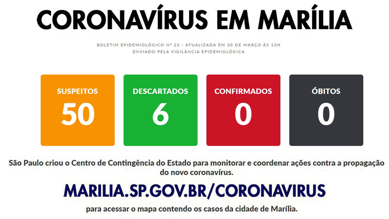 Acompanhem os dados em marilia.sp.gov.br/coronavirus com todas as informações, inclusive com o mapa georreferenciado dos casos suspeitos de Marília.