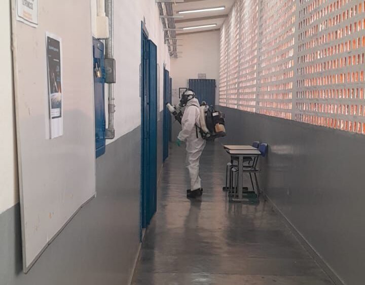 A Secretaria Municipal da Saúde realizou no último sábado (10) pela manhã mais uma ação de combate à dengue no município, com a nebulização costal em três escolas da rede estadual de ensino. Na ocasião, a secretária Paloma Libanio acompanhou a equipe da Divisão de Zoonoses, formada por uma supervisora de saúde e três agentes de controle de endemias, na execução do trabalho.