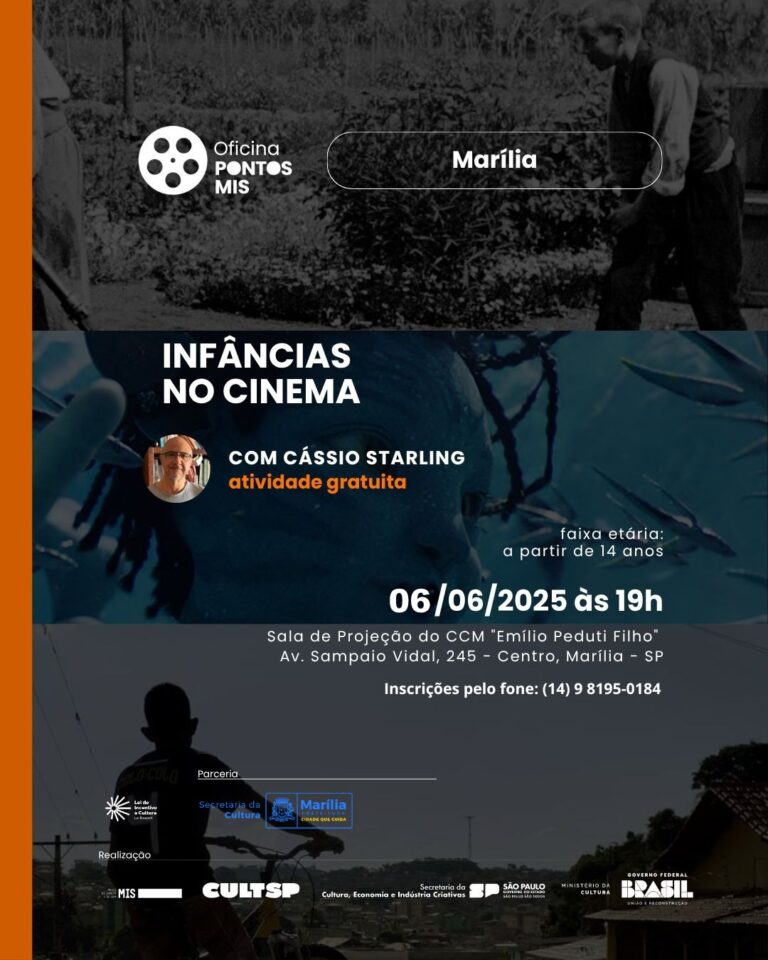 A Secretaria Municipal da Cultura está com inscrições abertas para a Oficina gratuita Pontos MIS: “Infâncias no Cinema” com o crítico e pesquisador Cássio Starling.