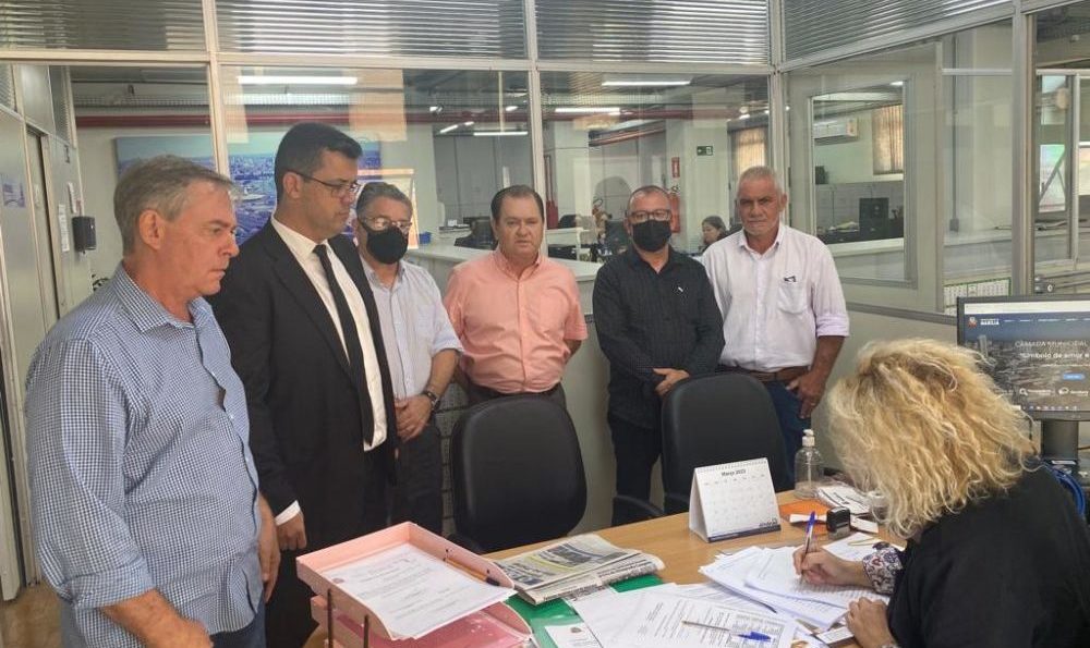 Um grupo formado por secretários municipais esteve na Câmara Municipal nesta quinta-feira (24), onde foi protocolado pedido de cassação do mandato do vereador Junior Féfin (PSL).