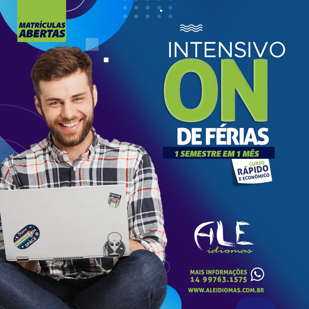 A escola de idiomas também oferece outras oportunidades de cursos de férias e mais detalhes podem ser obtidos por meio do WhatsApp (14) 9 9673-1575 [clique aqui para falar].
