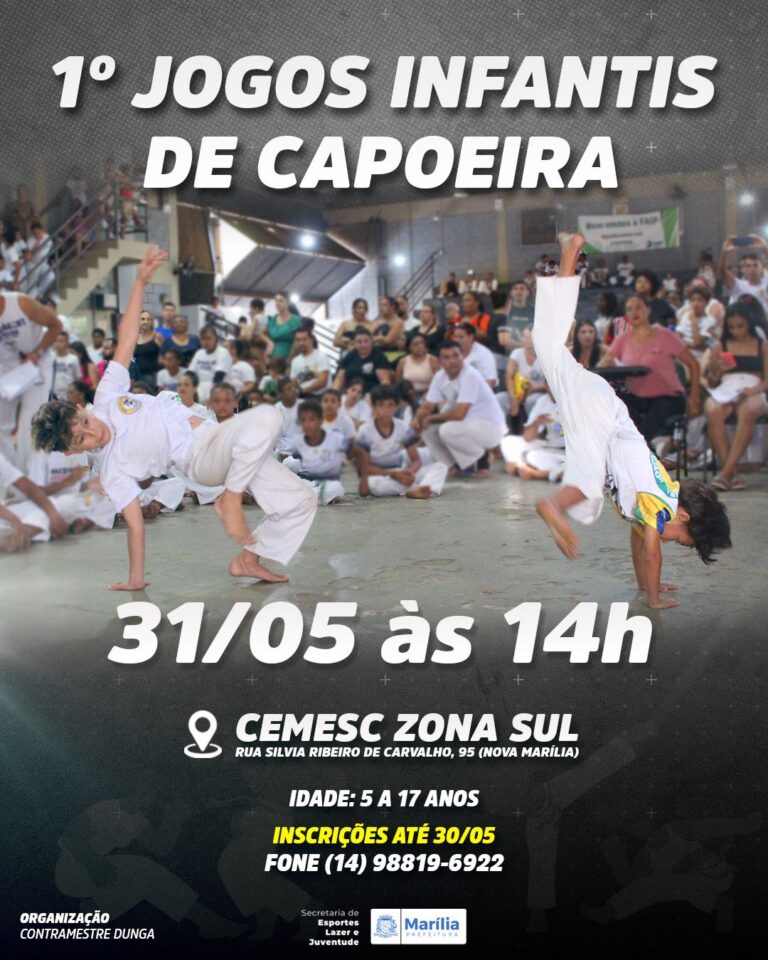 Buscando cada vez mais fomentar a prática da capoeira, bem como também aumentar a visibilidade e divulgação da modalidade, a Secretaria Municipal de Esportes abriu inscrições para a primeira edição dos Jogos Infantis de Capoeira.