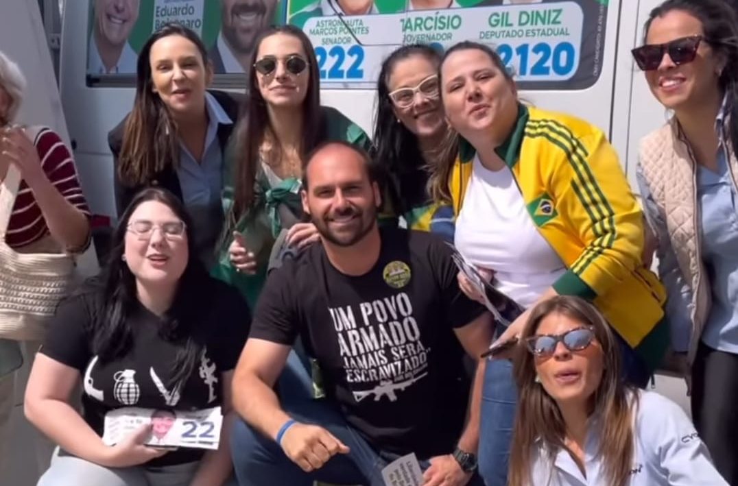 Eduardo Bolsonaro, com apoiadoras, faz campanha em Marília (Foto: Divulgação/Redes Sociais)