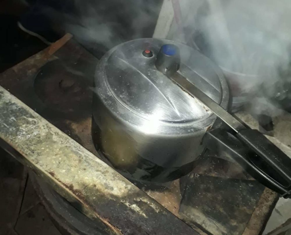 Churrasqueira velha foi improvisada como fogão, em razão da falta de gás (Foto: Redes Sociais)