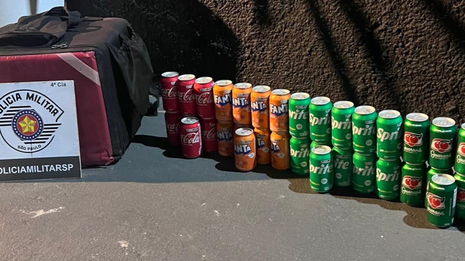 Ao verificarem o interior da mochila, os policiais encontraram 38 latas de refrigerante de diferentes marcas. Diante da situação, os militares realizaram buscas nas proximidades e localizaram um trailer de lanches com a porta aberta na mesma avenida.