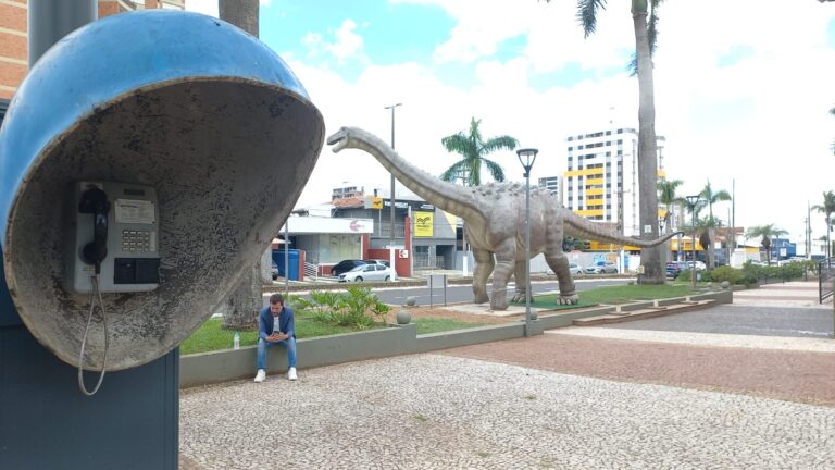 Em frente ao Museu de Paleontologia de Marília, os dois orelhões instalados no local deixaram de cumprir função prática e passaram a atrair olhares curiosos.