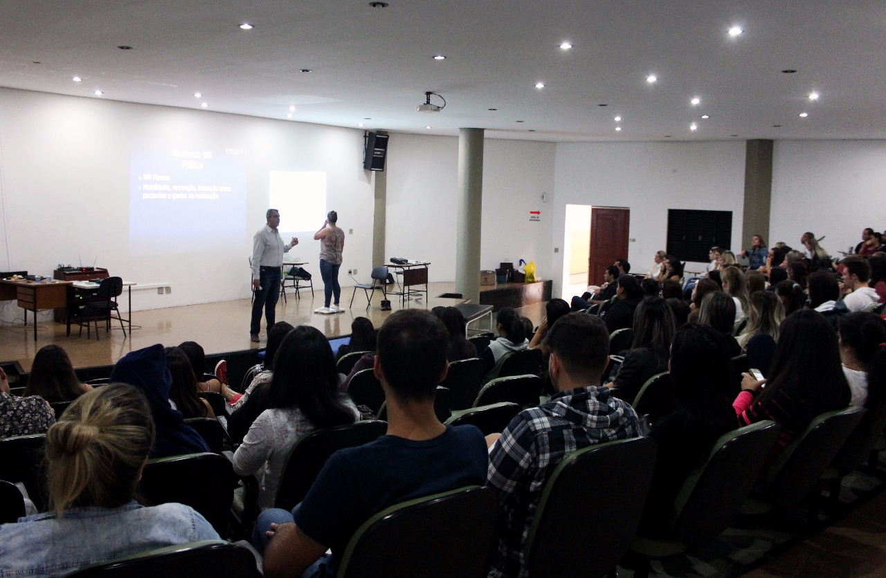 Durante a abertura da Semana, a Mobilização articular do segmento lombar (Maitland) foi trabalhada pelo ex-aluno da Universidade, Dr. Vidigal Gasparini. Na terça-feira o também egresso, Dr. Alexandre Laue tratou os Recursos fisioterapêuticos com Nintendo Wii, a chamada Gameterapia.