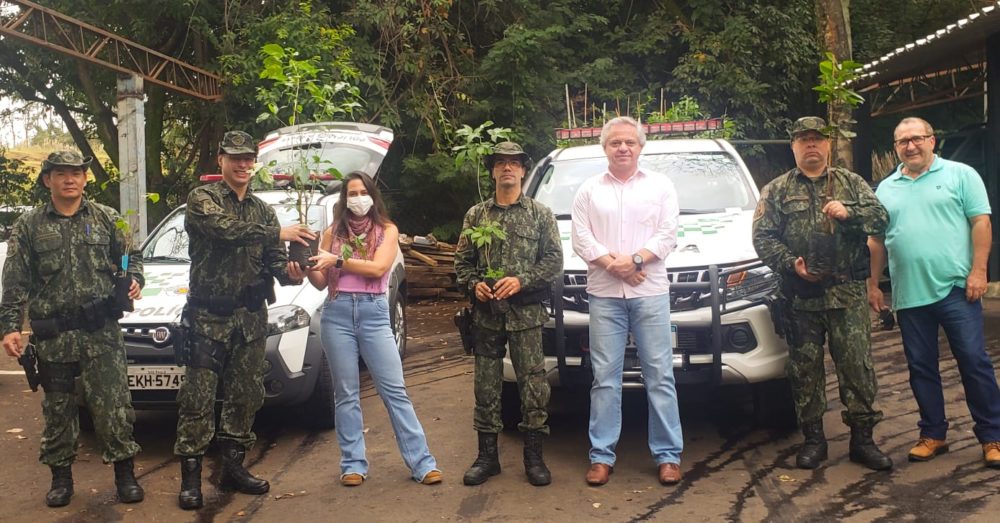 Foram entregues cerca de 200 mudas de árvores na Praça Saturnino de Brito, no coração de Marília, entre os dias 1º e 3 de junho, em ação conjunta entre integrantes da Secretaria Municipal do Meio Ambiente e da 4ª Companhia do 2° Batalhão de Policiamento Ambiental da Polícia Militar do Estado.