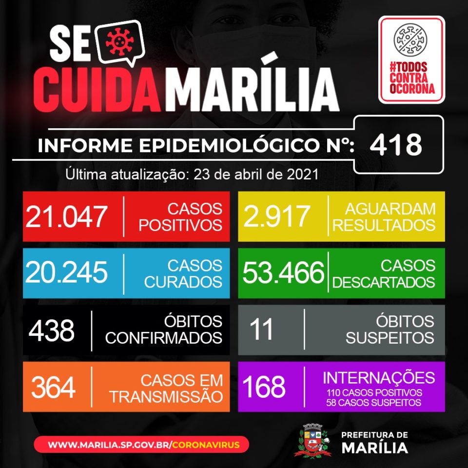 Marília fechou a semana somando 33 mortes em decorrência da Covid-19. A cidade computou óbitos na segunda (19), terça (20), quinta (22) e sexta-feira (23). Desde o início da pandemia são 438 vidas perdidas.