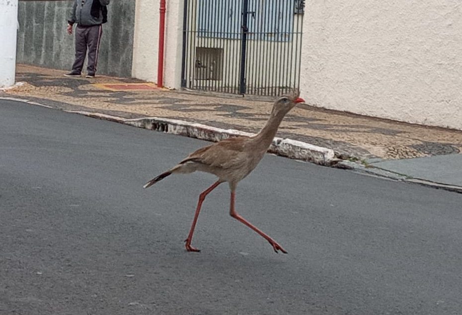 Um flagrante curioso chamou a atenção de quem passava pelo Centro de Marília na manhã desta terça-feira (22). Uma seriema foi avistada no início da rua São Luiz.