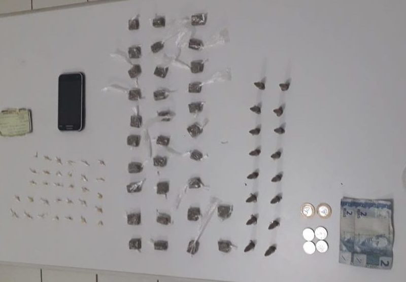 Ao ver a viatura o homem começou a caminhar e por isso foi abordado pelos militares. Ele foi identificado como Rafael e em sua posse foram localizados cinco pedras de crack, duas porções de maconha, R$ 8 e um celular.