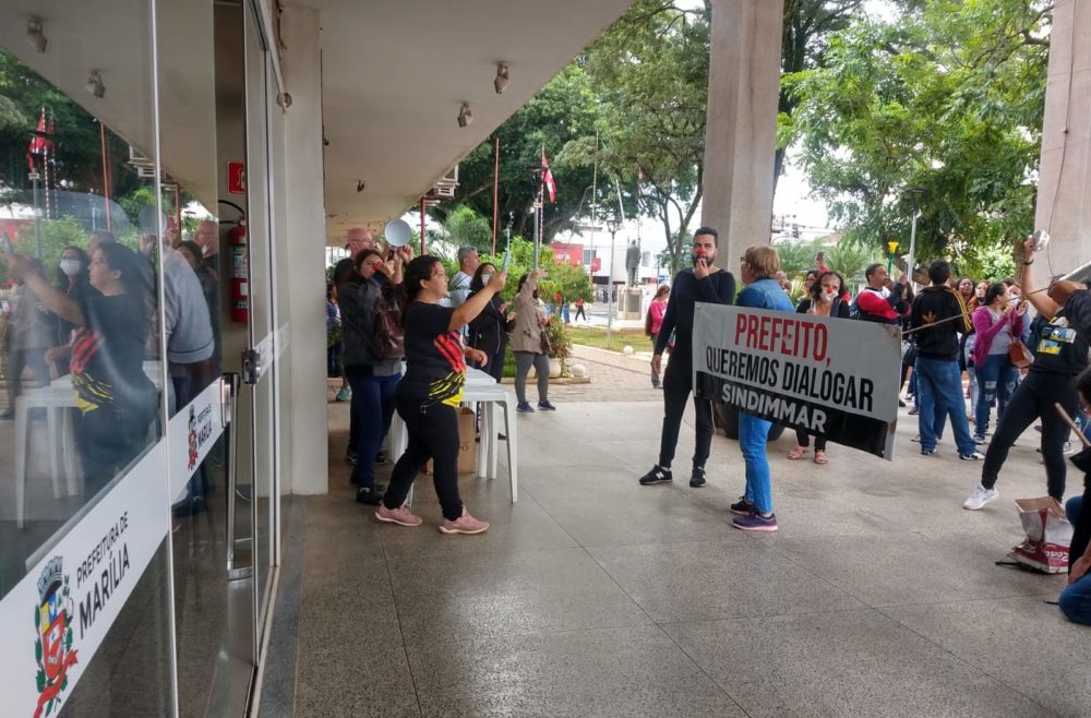 Servidores protestam em frente ao Paço Municipal (Foto: Sindimmar)