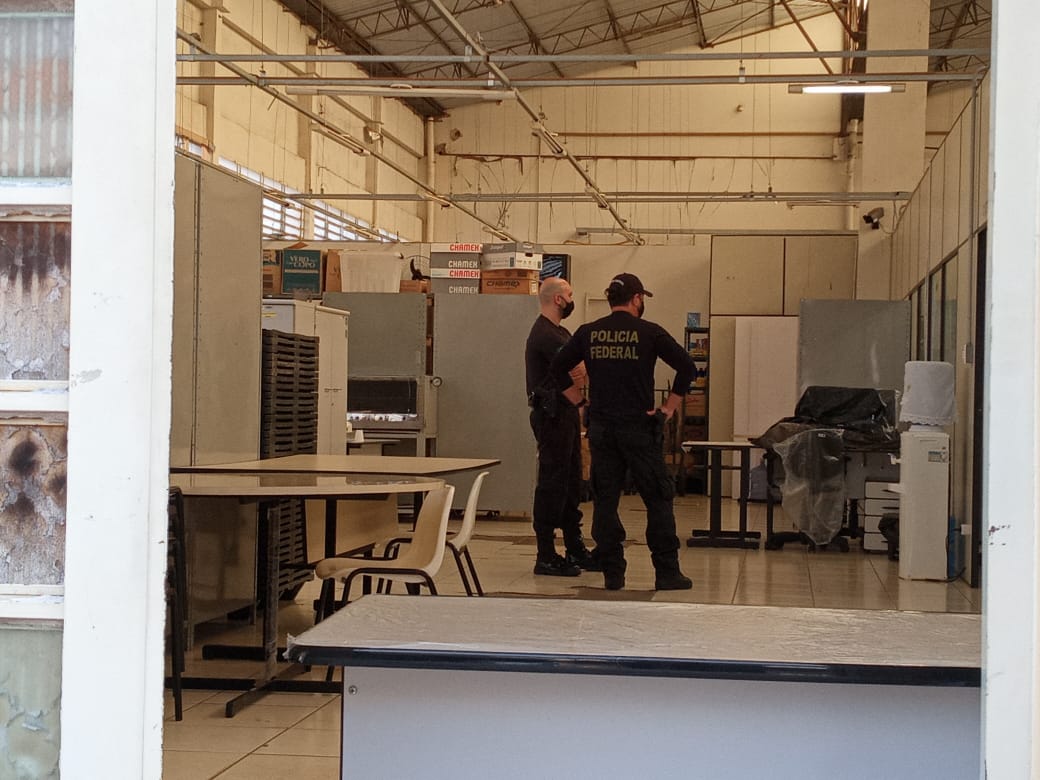 Federais dentro da Divisão de Alimentação da Prefeitura, nesta sexta-feira (28), durante operação Deméter (Foto: Carlos Rodrigues/Marília Notícia)