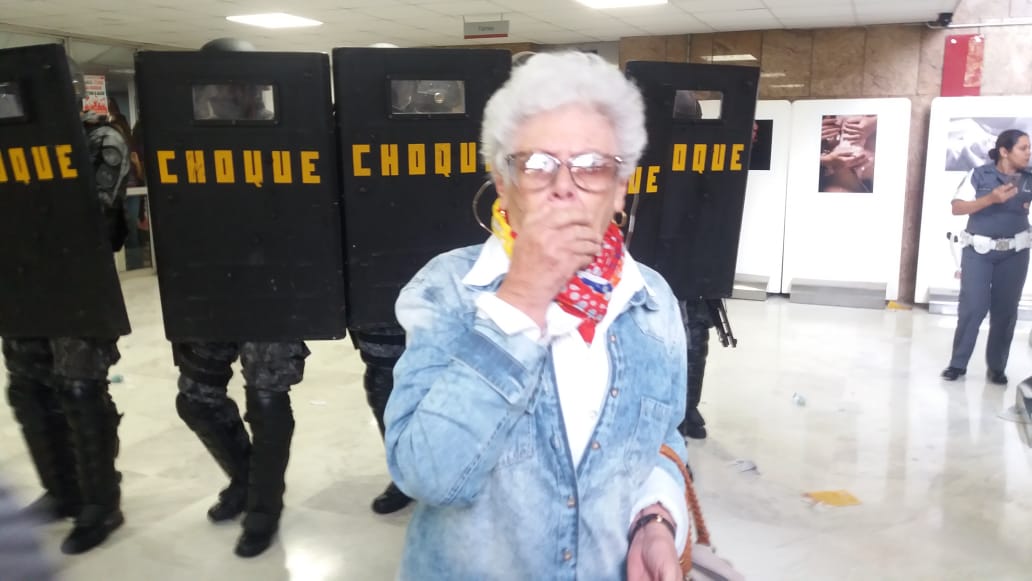 A confusão ainda continua no lado de fora da Alesp às 12h20. No fim da manhã, para tentar dispersar manifestantes na frente do prédio, a polícia jogou pelo menos duas bombas de efeito moral. Os corredores da Assembleia precisaram ser esvaziados por causa do gás lacrimogêneo.