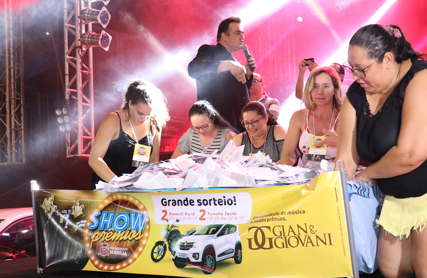 Cerca de 10 mil pessoas passaram pelo sorteio de dois carros e duas motos zero quilômetro e logo depois acompanharam o show da consagrada dupla sertaneja Gian & Giovani. A ação foi promovida pela Prefeitura de Marília.