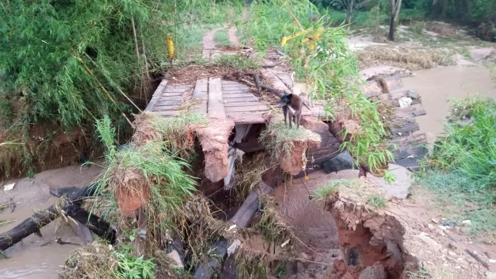 Parte do muro do cemitério da cidade também caiu e a ponte da estrada municipal, que dá acesso ao bairro Jurema, despencou, deixando a região interditada.