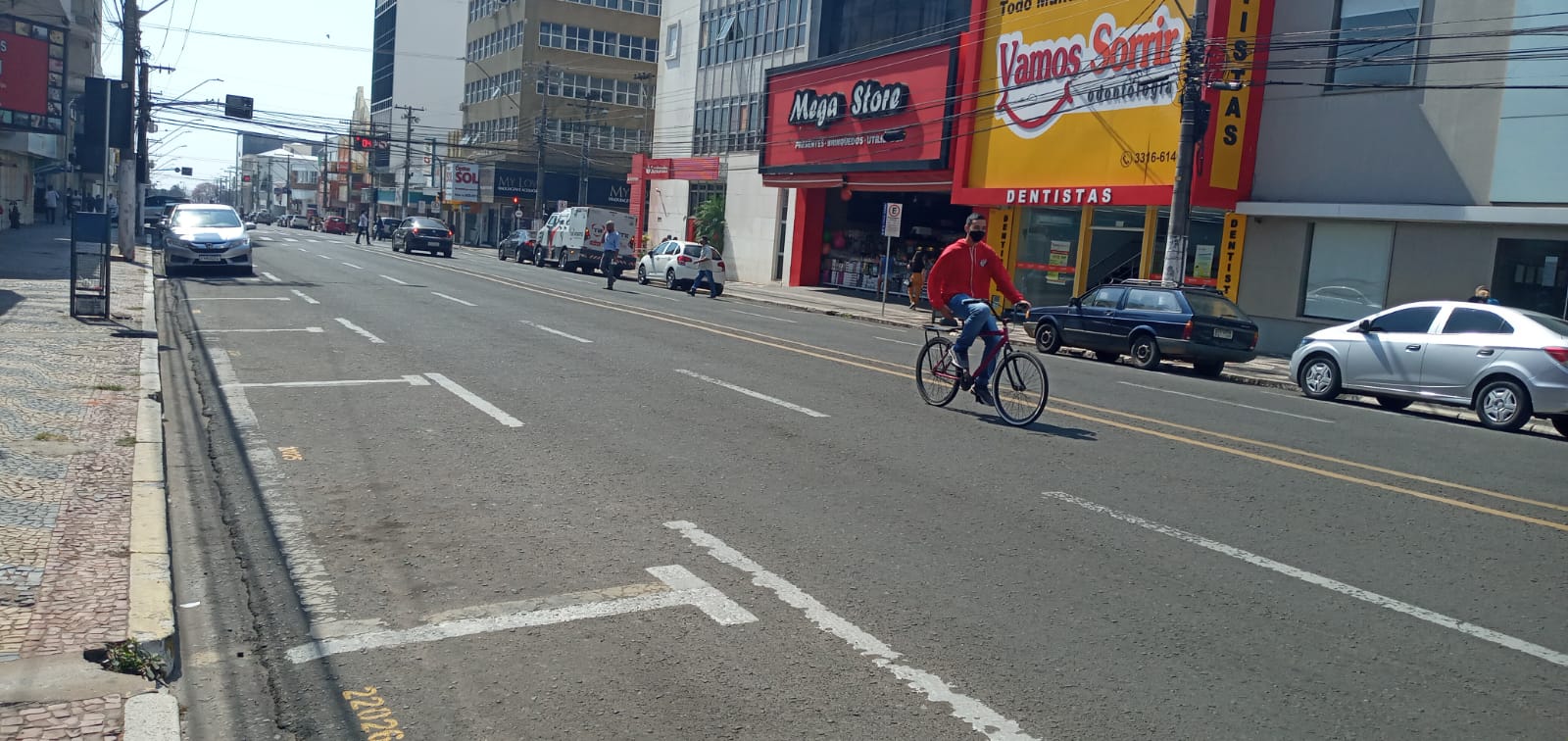 Sobram vagas de estacionamento na avenida Sampaio Vidal; via também tem redução de tráfego e resta mais espaço até para bicicleta (Foto: Carlos Rodrigues /Marília Notícia)