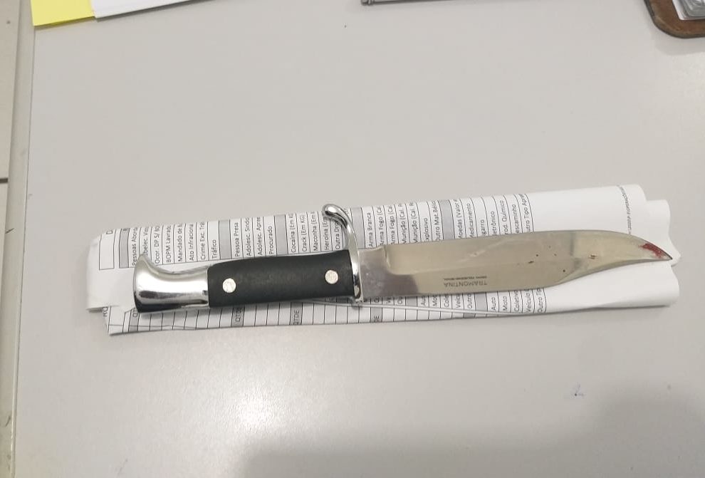 A faca usada no crime foi apreendida e a vítima estava em estado grave, precisando passar por cirurgia.