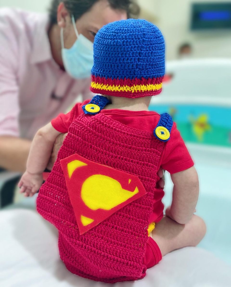 “Após 28 dias! Mais uma batalha vencida, mais superação, mais força no viver! Preparem os corações, hoje levaremos nosso super herói pra casa! Obrigada a todos pela orações! Obrigada, Pai do céu!”, escreveu a mãe do menino, a advogada Daniela Guedes Bombini.
