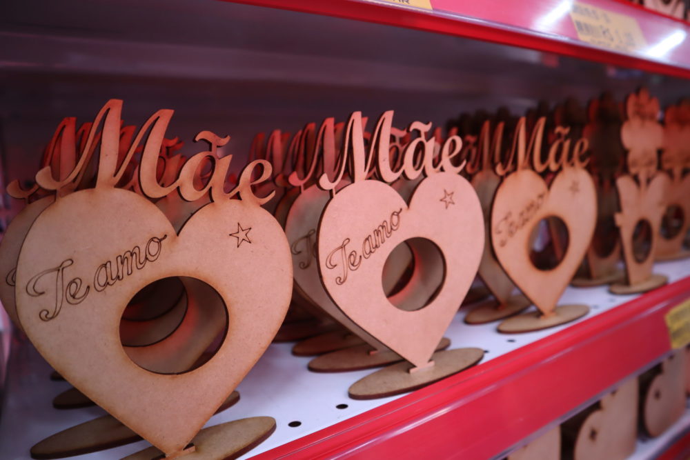 “As pessoas podem montar uma cesta para presentear as mães. Temos cestas de MDF em três tamanhos, inclusive em formato de coração, além de caixinhas de MDF de várias formas, tanto personalizada para o Dia das Mães quanto lisa para a pessoa personalizar. Aqui os clientes encontram uma grande variedade de produtos e diversos tipos de chocolates, que podem fazer parte desta cesta”, conta o empresário.