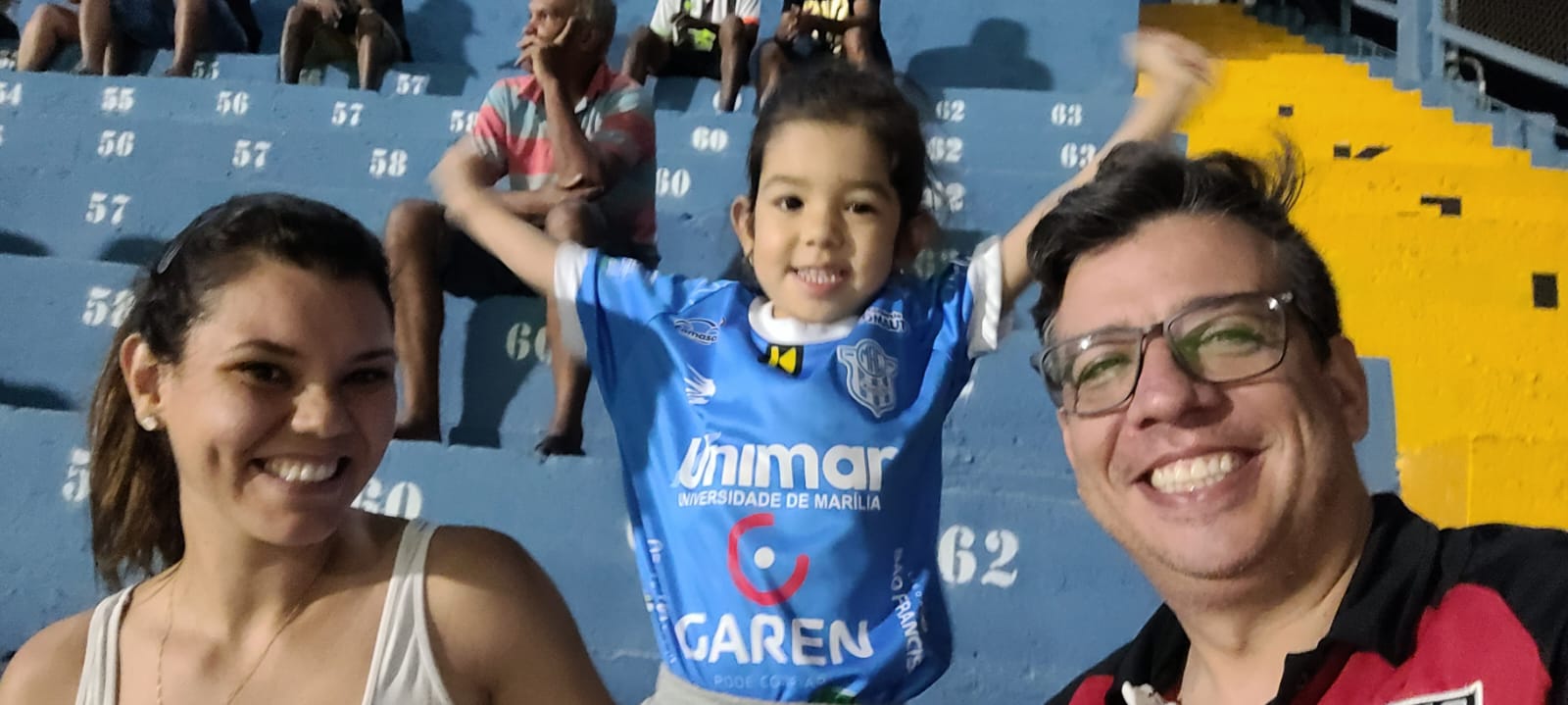 Combinei com minha esposa que iríamos assistir. Eu escreveria sobre o jogo para o Marília Notícia e aproveitaria para levar minha filha ao estádio pela primeira vez. Combinamos que, se ela não se sentisse bem, deixaríamos o estádio.