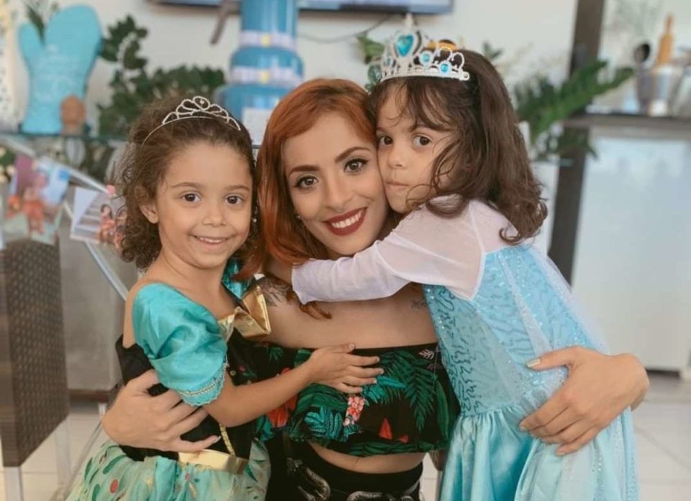 Enfrentando uma jornada tripla de trabalho, Daniele possui uma rede de apoio familiar para conseguir dar conta de tudo. “Tenho muita sorte de contar com a ajuda da minha mãe, meu pai e minhas irmãs. Elas são as únicas sobrinhas e netas da família, então a gente criou um elo muito forte, minha família inteira se uniu por conta das meninas”, narra a mãe solo.