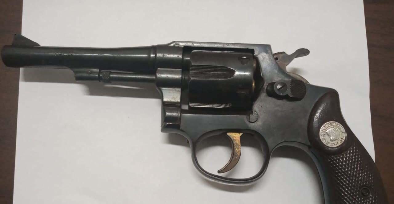 No interior do carro, abaixo do banco do passageiro, foi encontrado o objeto que o carona tentou dispensar: um revólver calibre 32 da marca Taurus, com numeração raspada. No tambor, seis munições, sendo cinco intactas e uma deflagrada.