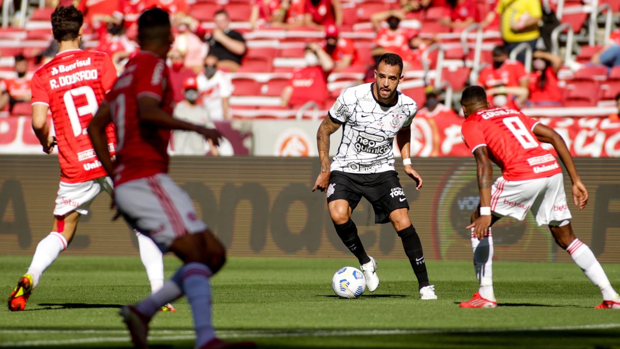 O técnico Sylvinho improvisou e explorou atletas do Corinthians atuando em novas funções durante o empate por 2 a 2 com o Internacional. Foi o caso dos jovens Du Queiroz, que atuou como meio-campista, e Gabriel Pereira, que apareceu mais centralizado em diversos momentos, inclusive no lance do primeiro gol do time, em que deu assistência para Giuliano marcar. O experiência Renato Augusto fez o papel de um ‘falso nove’ em alguns momentos.