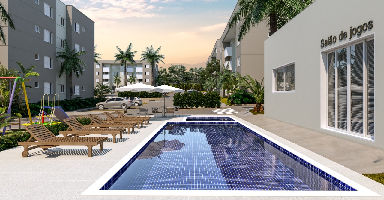 Perspectiva da área de lazer do empreendimento; subsídio do programa Minha Casa Minha Vida com o padrão de qualidade da Construtora Tack (Imagem: Divulgação)