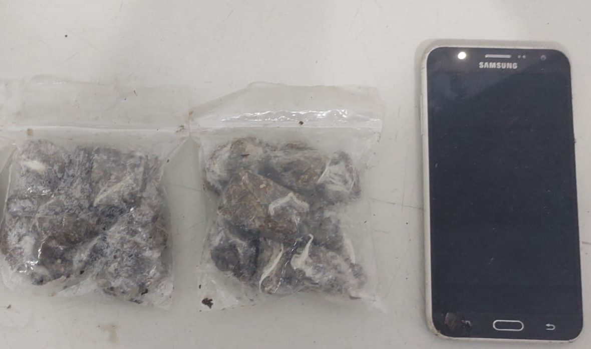 Os militares perceberam quando o suspeito tentou fugir ao notar a presença da equipe. O acusado foi detido e com ele, em revista pessoal, foram localizadas 29 porções de maconha e um telefone celular.