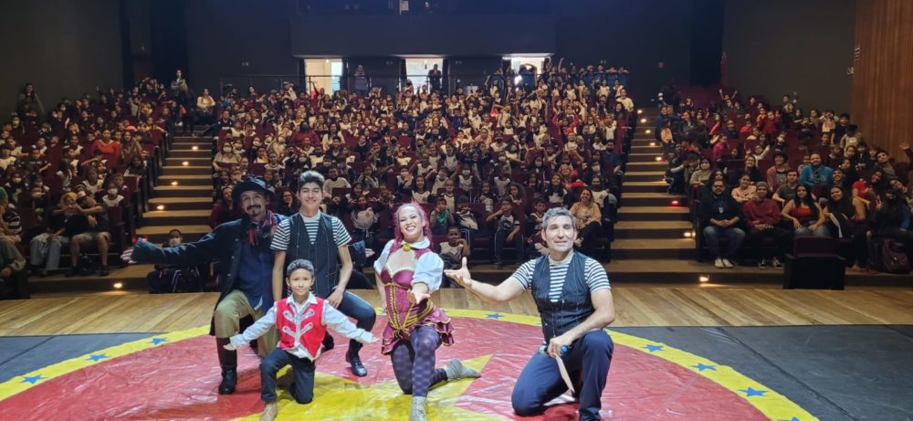 Na última segunda-feira (22), o Teatro Municipal recebeu cerca de 800 crianças atendidas pela rede municipal de ensino, Colégio Esmeraldas, Associação Amor de Mãe, Fundação Casa e Senac.
