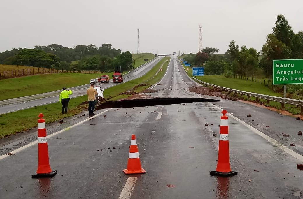 Além disso, no quilômetro 258, próximo ao pedágio, sentido Bauru-Botucatu, a pista desmoronou e um carro foi parar no canteiro da rodovia. O trecho também está completamente interditado e, segundo a concessionária, o motorista foi retirado sem lesões. Não há previsão de liberação da via.