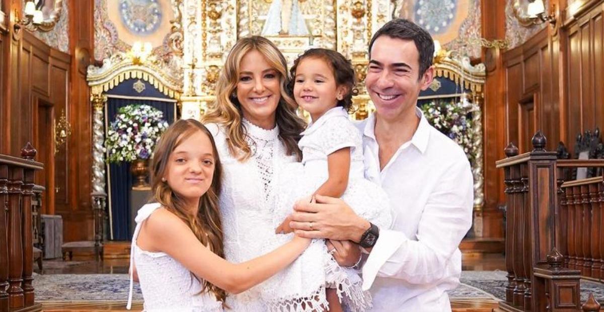 Ticiane Pinheiro e César Tralli decidiram batizar a pequena Manuella logo após o Natal deste ano. A celebração foi neste domingo, 26, em São Paulo, na igreja Nossa Senhora do Brasil.