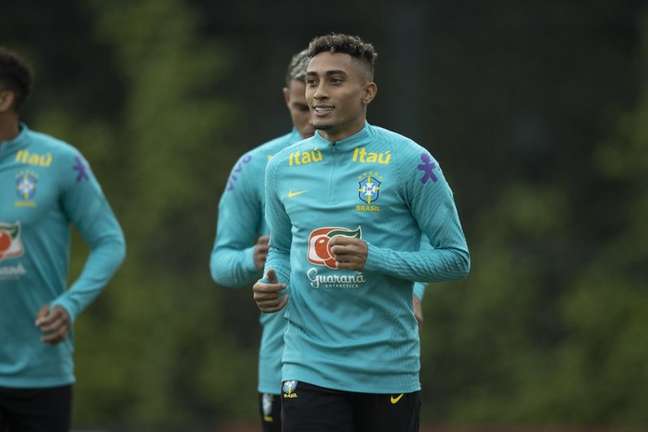 Após se destacar com um boa atuação ao entrar no segundo tempo do empate sem gols com a Colômbia, no último domingo, o atacante Raphinha treinou como titular durante as atividades realizadas pela seleção brasileira nesta terça-feira, no estádio da Colina, em Manaus. Para isso, Gabriel perdeu a posição no esboço montado por Tite, que também promoveu mudanças na defesa, para enfrentar o Uruguai nesta quinta, pela 12.ª rodada das Eliminatórias da Copa do Mundo de 2022, na Arena Amazônia.