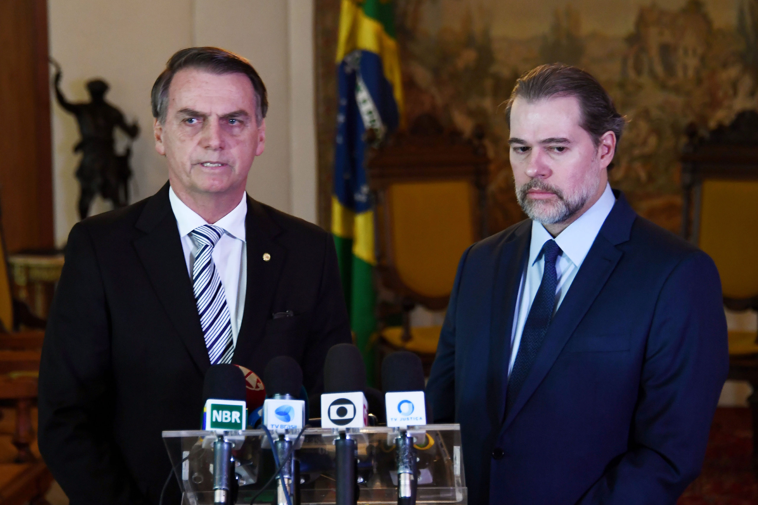 O ministro Dias Toffoli, do Supremo Tribunal Federal, extinguiu duas notícias-crimes em que parlamentares da oposição pediam a abertura de investigação contra o presidente Jair Bolsonaro por supostos crimes de incitação e apologia ao crime, abolição violenta do Estado Democrático de Direito, violência política além de interferência na Agência Brasileira de Inteligência (Abin).