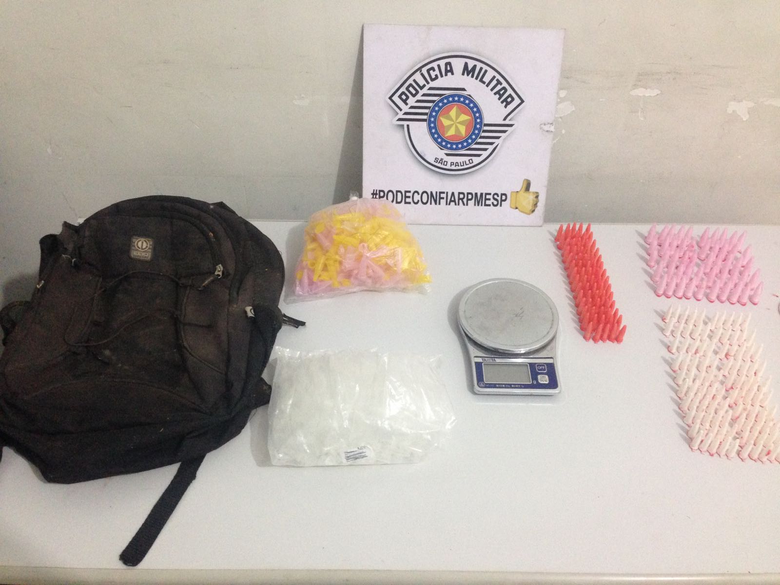 A Polícia Militar apreendeu uma mochila com 150 porções de cocaína e 70 de crack durante a perseguição a um traficante na Vila Barros, zona Norte de Marília, durante a tarde de terça-feira (24). O criminoso conseguiu escapar.