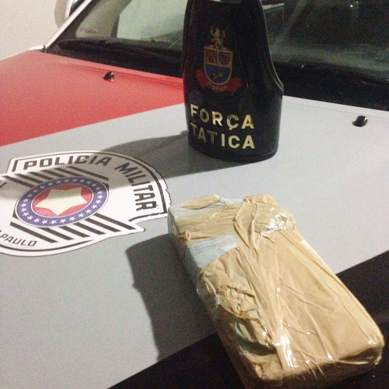 Após um cerco policial na região, o rapaz foi detido com uma mochila, sendo que em seu interior carregava o tijolo prensado com 1,1 kg de cocaína pura para venda.